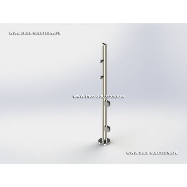 PERSONNALISATION : Ce poteau peut indiférement vous être livré avec des pinces à verre de forme carrée ou demi-ronde et avec un support de main courante court ou long (la hauteur hors-tout du poteau restant la même).